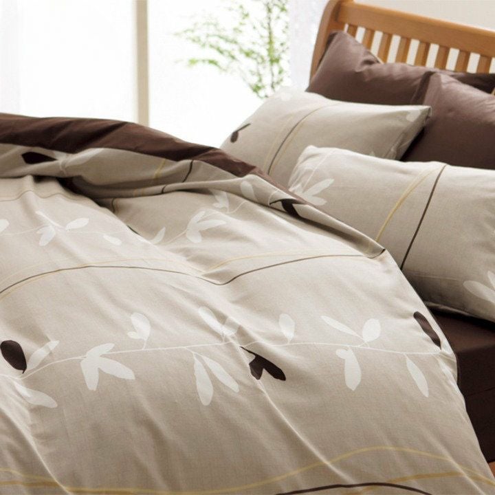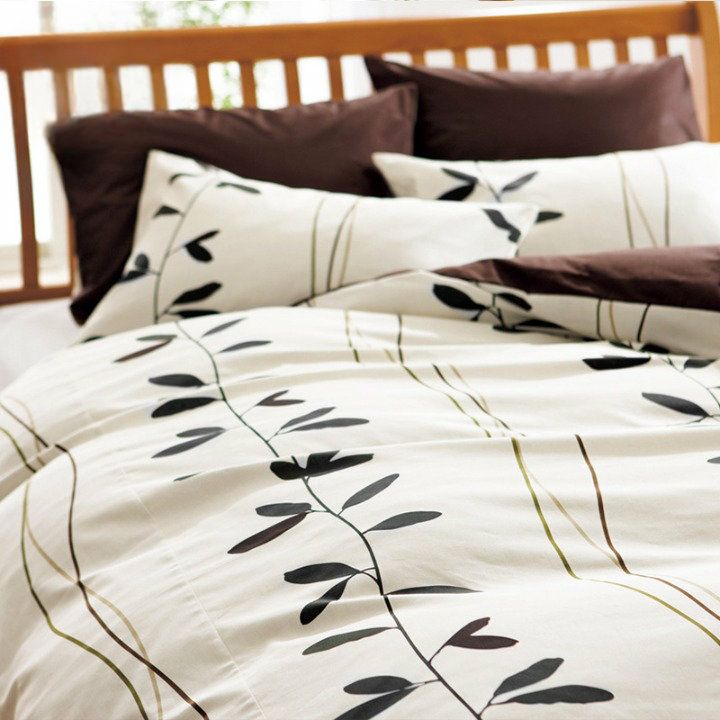 ファッションを楽しむように、お部屋のコーディネートも楽しむ、多彩な色柄を展開する、西川リビングの「mee」シリーズの掛け布団カバーです。シックな北欧テイストのリーフパターン。