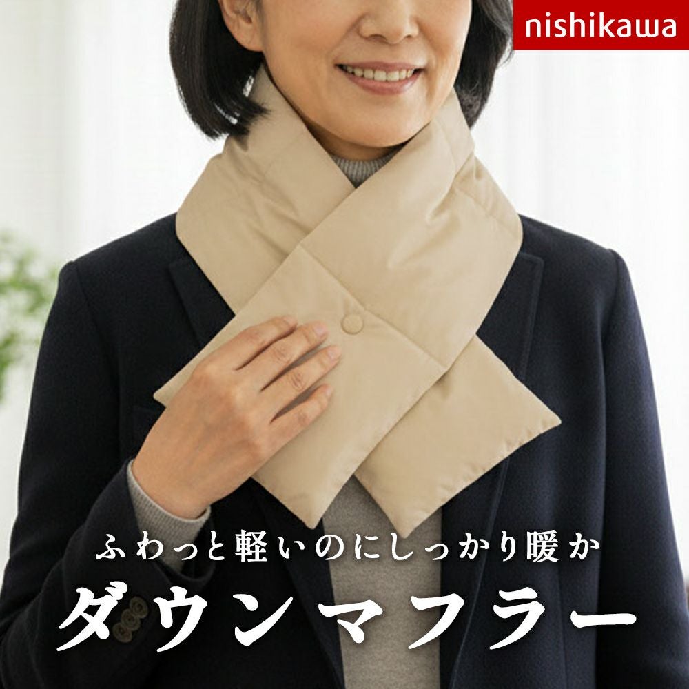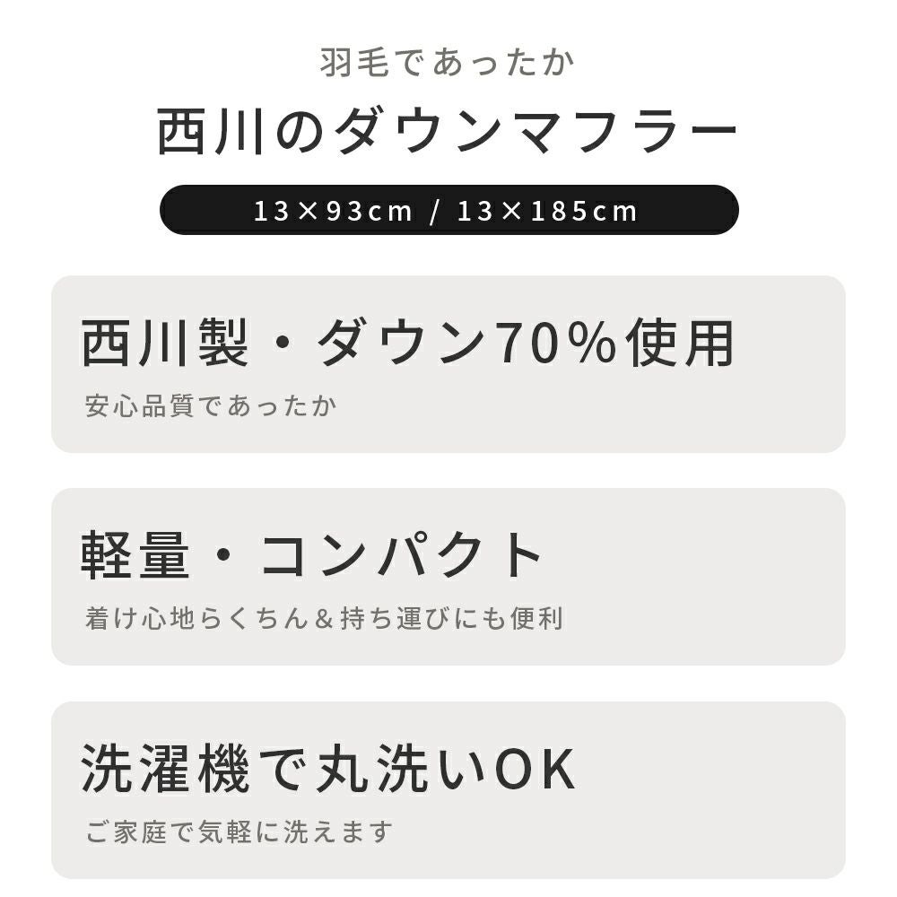 西川 洗えるダウンマフラー ダウン70% 軽量 選べる2サイズ