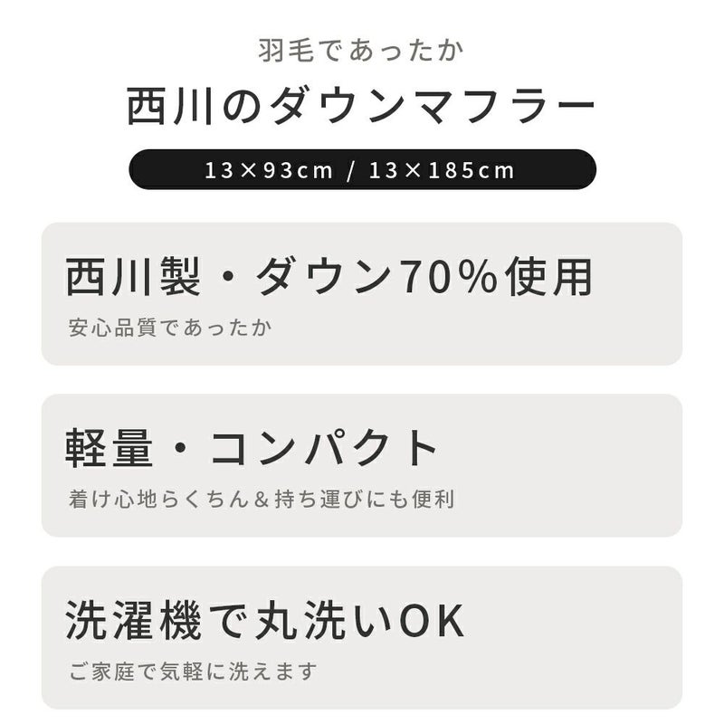 5. 西川 洗えるダウンマフラー ダウン70% 軽量 選べる2サイズ