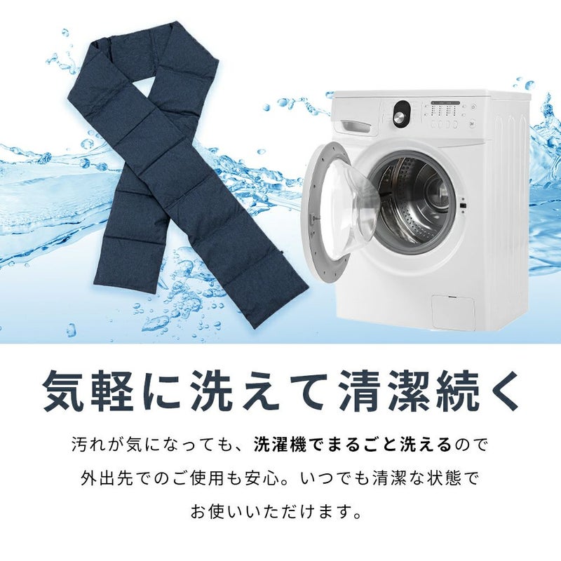 汚れが気になっても、洗濯機でまるごと洗えるので外出先でのご使用も安心。いつでも清潔な状態でお使いいただけます。