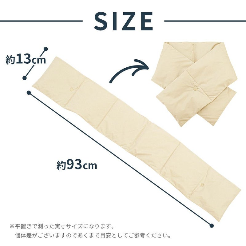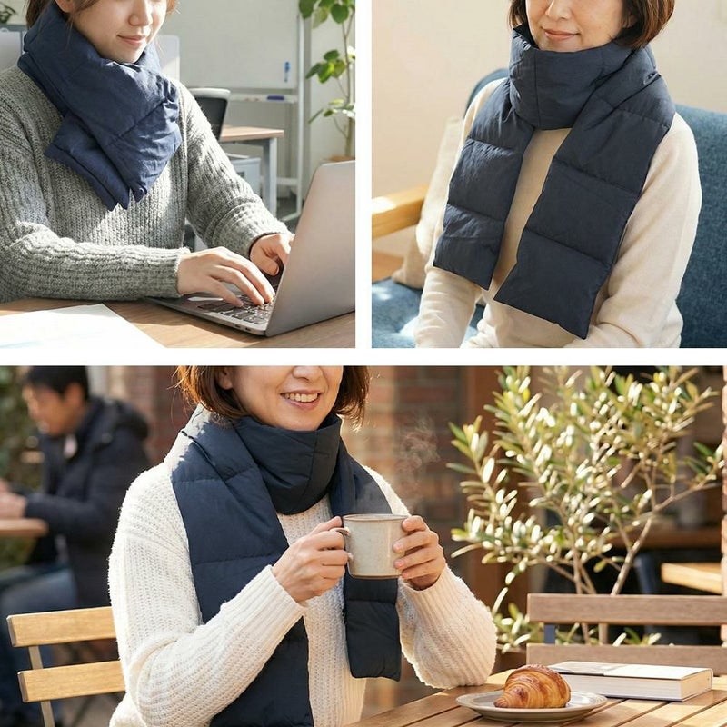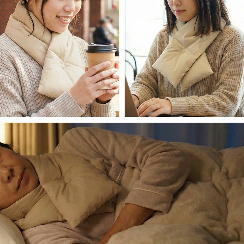 しっかりあたたかいのに、羽毛だから驚くほど軽量。圧倒的な軽さで首や肩に負担をかけにくく、肩こりが気になる方にも嬉しい着け心地です。