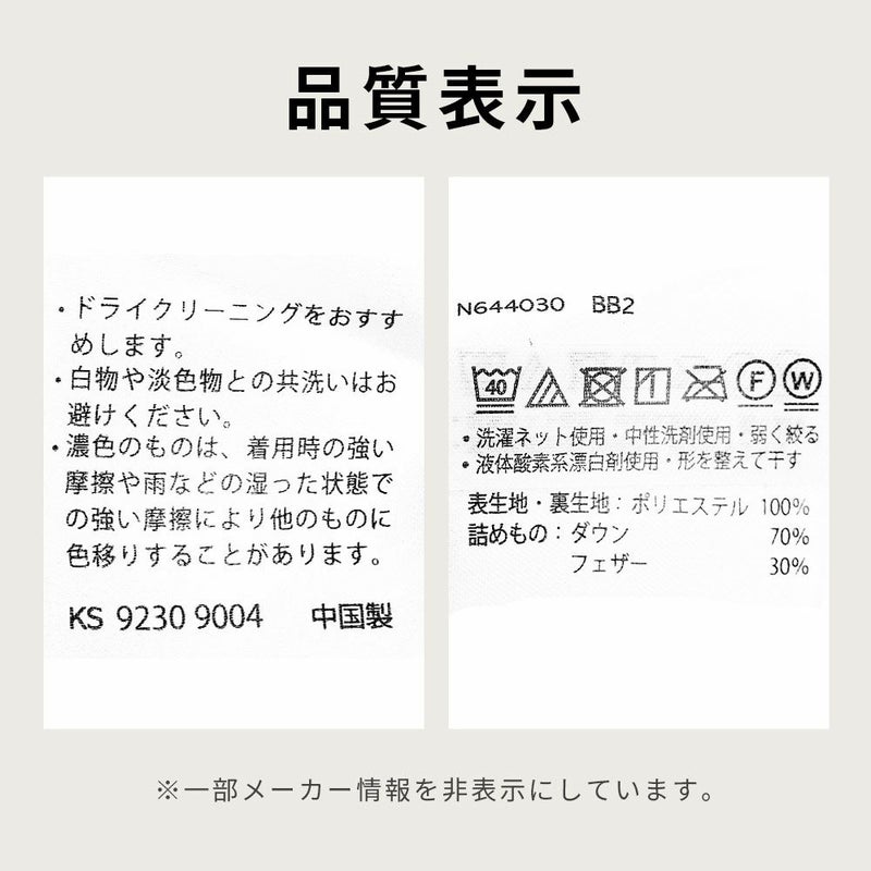 軽量ながらダウン70%配合。一般的なわた素材と比べてふんわりと軽くて快適な着け心地です。保温性も断然違います。