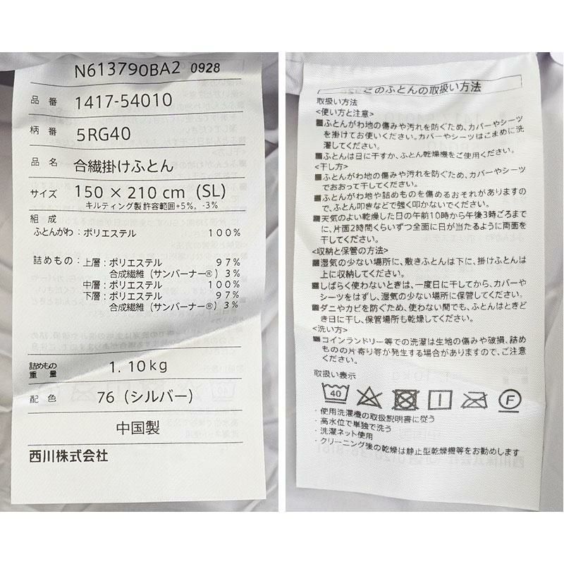 5. 【完売】西川 吸湿発熱 掛け布団 シングルロング 150×210cm