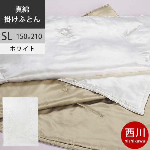 西川 西川プレミアム 真綿布団 真綿掛けふとん 真綿 掛け布団 絹100% 入金手挽き真綿 SL シングルロング 150×210cm 1.0kg 日本製 NP9651 配色W ホワイト 【2021AW】