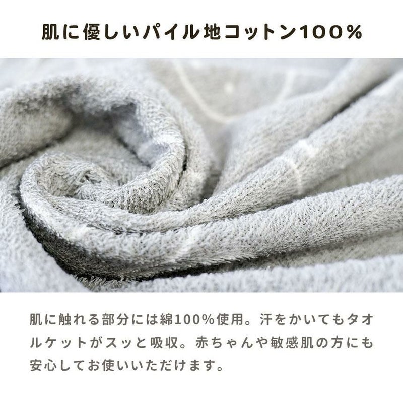 肌に触れるパイル部分には、綿100%使用。汗をかいてもタオルケットがスッと吸収。赤ちゃんや敏感肌の方にも安心してお使いいただけます。