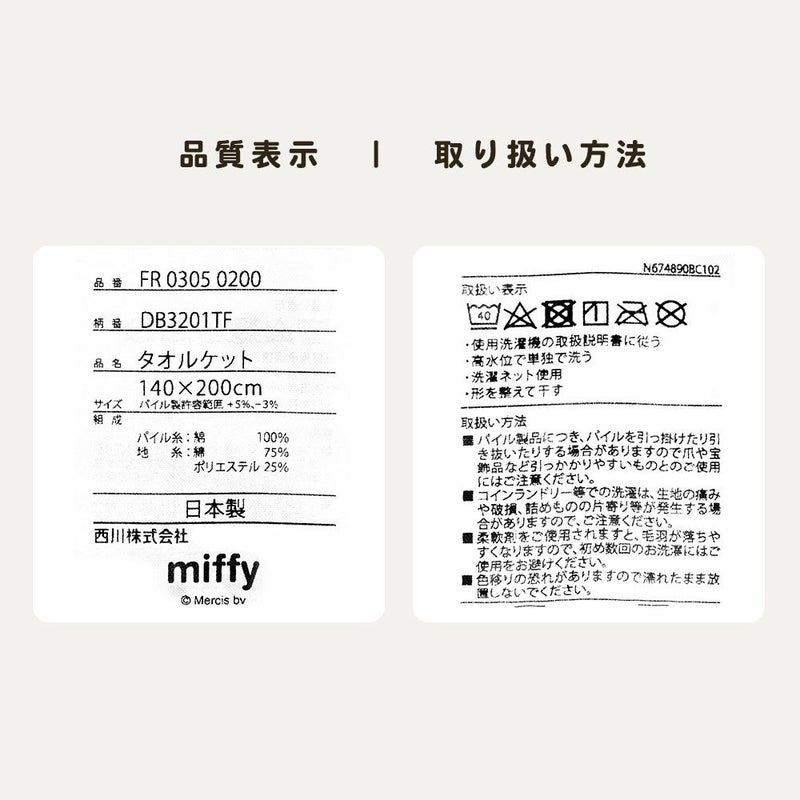 4. 西川 ミッフィー タオルケット シングル 140×200cm DB3201TF