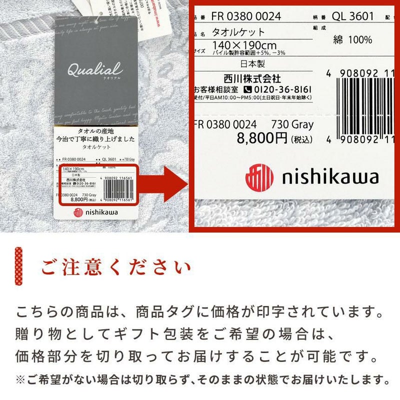 こちらの商品は商品タグに価格が印字されています。贈り物としてギフト包装をご希望の場合は、価格部分を切り取ってお届けすることが可能です。※ご希望がない場合は切り取らず、そのままの状態でお届けいたします。