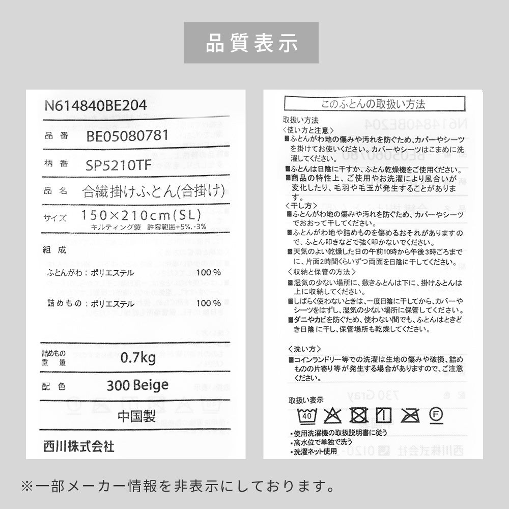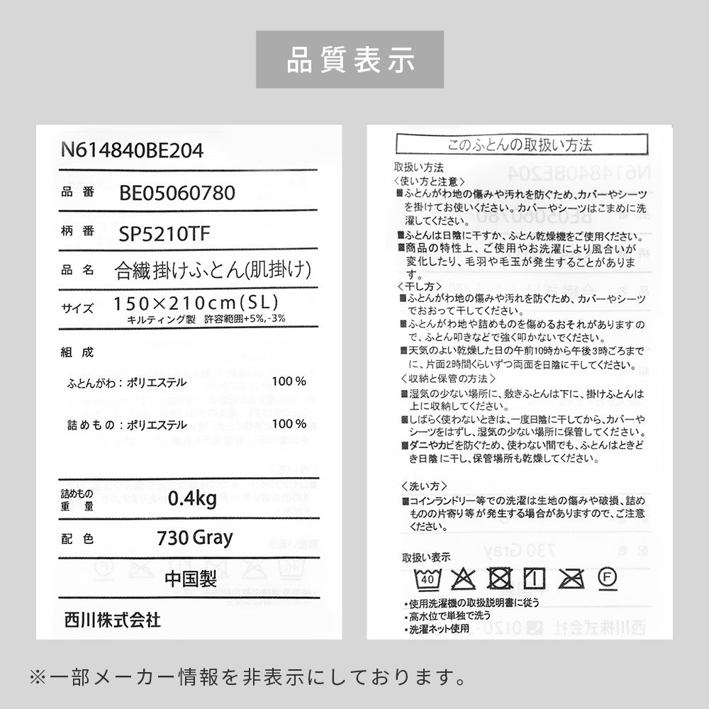 製品重量 肌掛け布団:約 1.2 kg(製品タグを含む)