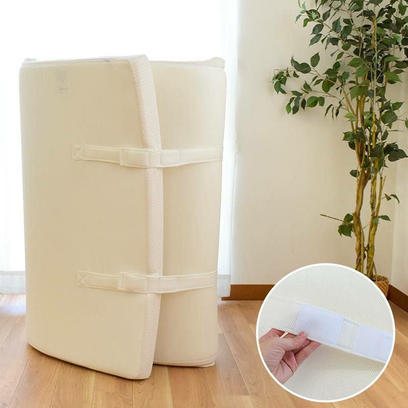 • 収納用のベルトは通常時は折りたたんだ状態でご使用ください。面ファスナーのフック部分が側生地に引っかかりますと、取り外しの際に生地を損傷することがあります。三つ折りにする際にもご注意ください。