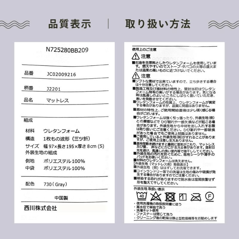 西川 高反発 三つ折り マットレス 折りたたみ WAVE シングル 97×195cm