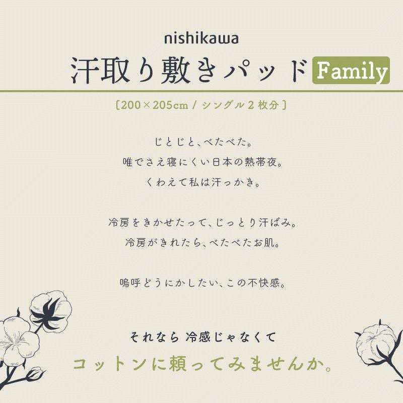 西川 コットンクール 敷きパッド ファミリー 200×205cm
