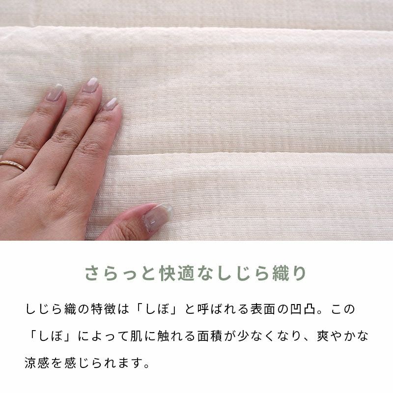 しじら織の特徴は「しぼ」と呼ばれる表面の凹凸。この「しぼ」によって肌に触れる面積が少なくなり、爽やかな涼感を感じられます。