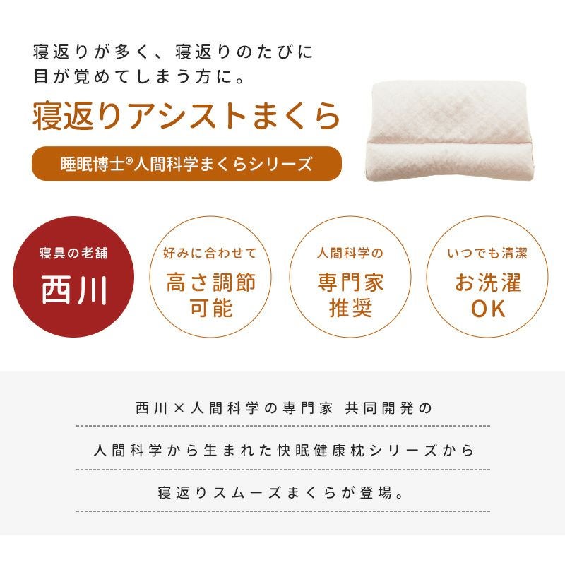 西川 睡眠博士® 寝返りアシストまくら 53×33cm