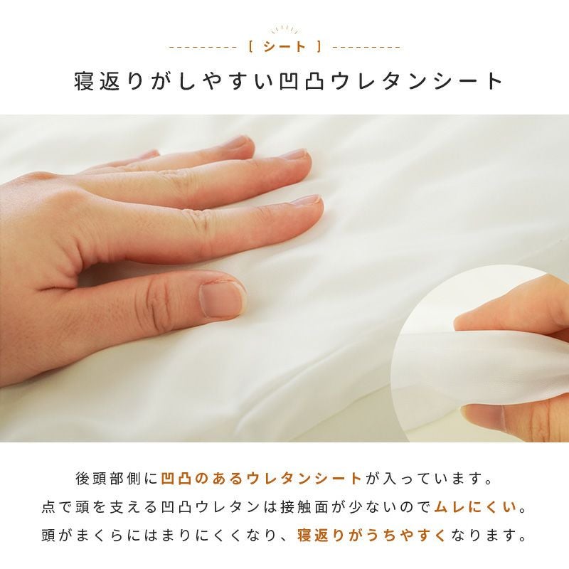 後頭部側に凹凸のあるウレタンシートが入っています。点で頭を支える凹凸ウレタンは接触面が少ないのでムレにくい。頭がまくらにはまりにくくなり、寝返りがうちやすくなります。