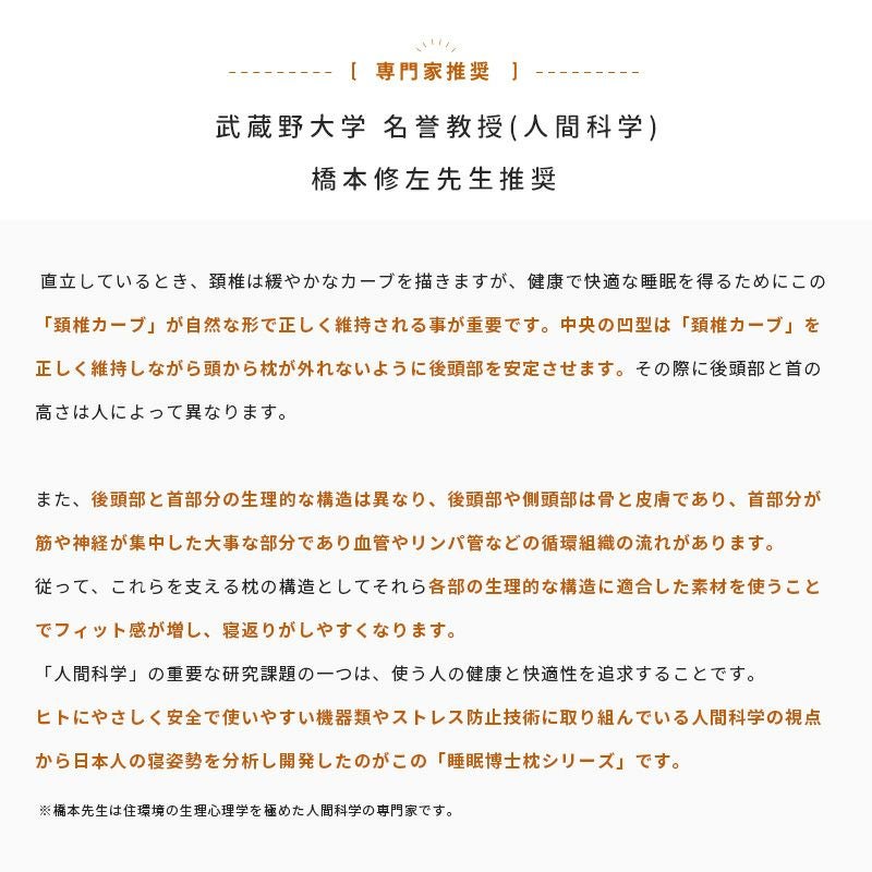 ヒトにやさしく安全で使いやすい機器類やストレス防止技術に取り組んでいる人間科学の視点から日本人の寝姿勢を分析し開発したのがこの「睡眠博士枕シリーズ」です。 ※橋本先生は住環境の生理心理学を極めた人間科学の専門家です。
