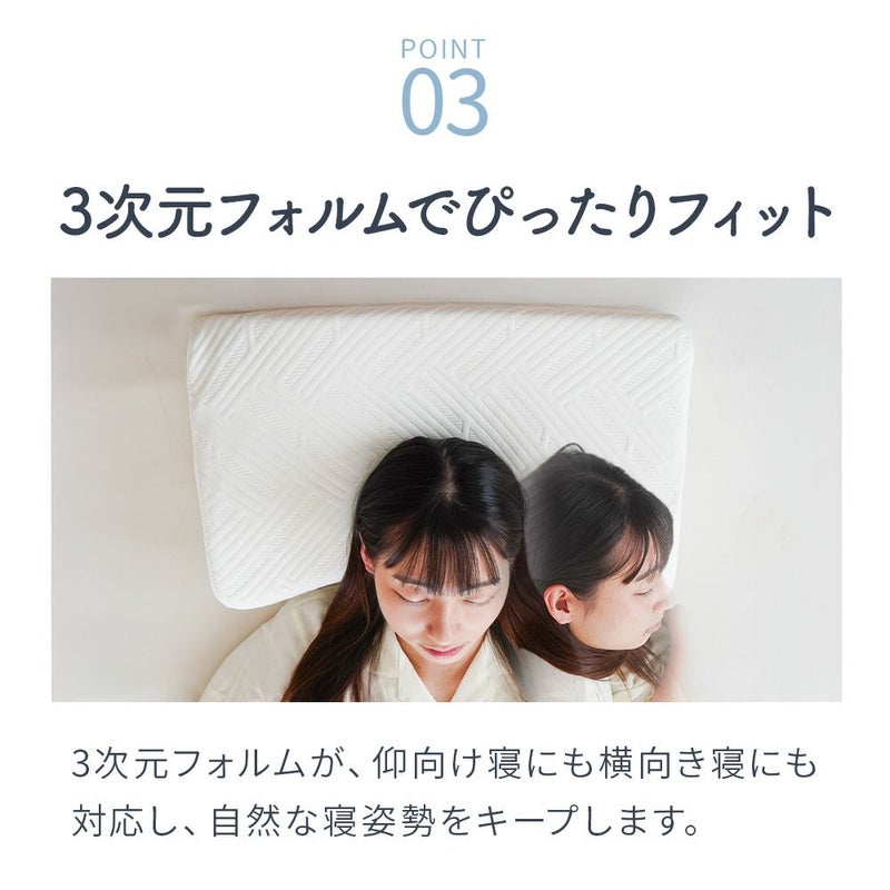 3次元フォルムが、仰向け寝にも横向き寝にも対応し、自然な寝姿勢をキープします。