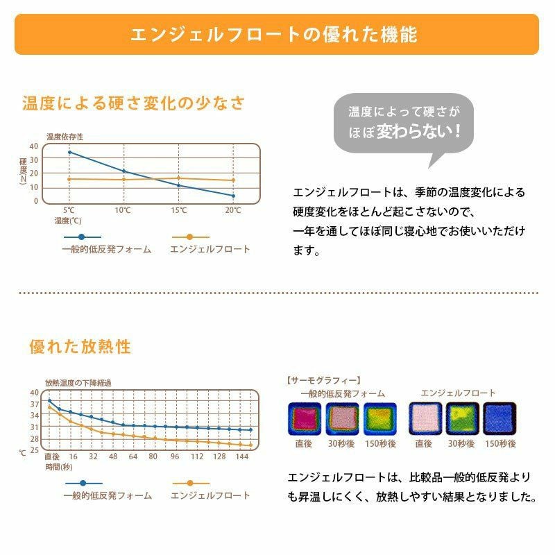 一般的な低反発とは異なる、特殊ウレタンフォームを採用し、新感覚のふわふわ感としっとり感を実現。温度によって硬さが変化を起こしにくい素材ですので、冬場でも変わらない柔らかさでお使いいただけます。