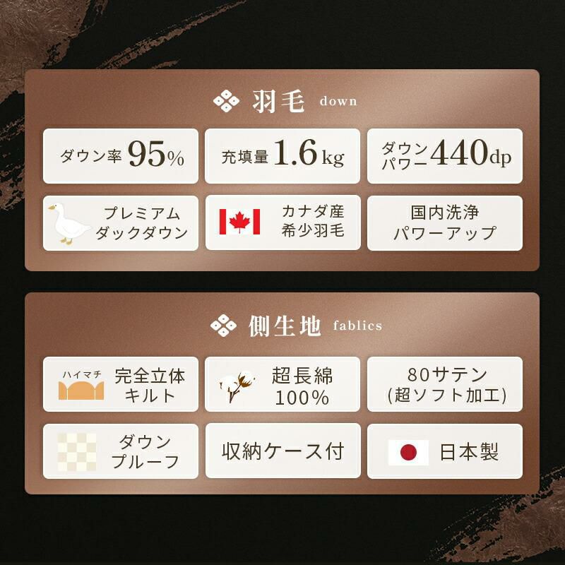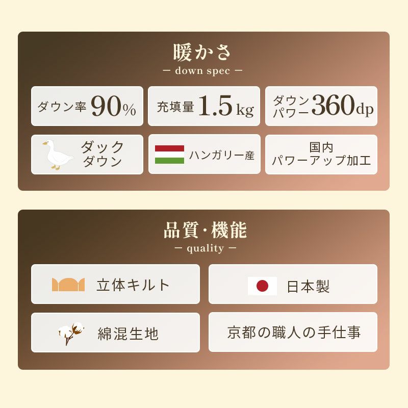 他の画像を見る 在庫切れ 会員セール 当社限定 京都羽毛 銅 -akagane- プレミアムダックダウン95% 羽毛布団 シングル超ロング 150×230cm ¥ 196,680 ¥ 98,000 税込 会員セール価格 ¥ 88,200 税込 お気に入りに登録する