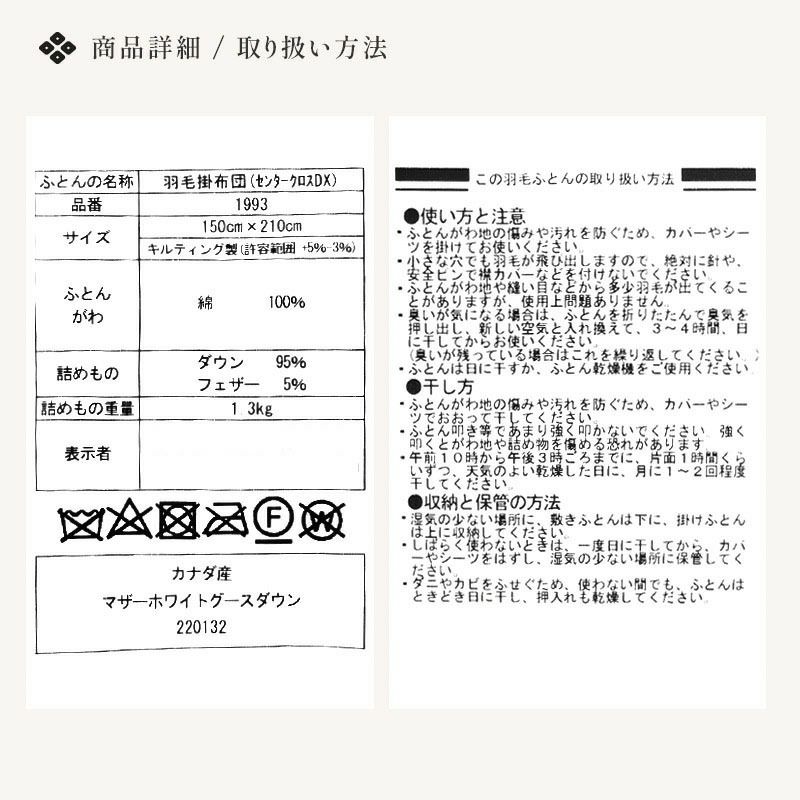 他の画像を見る 在庫切れ 即日発送 会員セール 当社限定 京都羽毛 カナダ産 ホワイトダックダウン95% 羽毛布団 シングルロング 150×210cm ¥ 45,800 税込 会員セール価格 ¥ 41,220 税込 お気に入りに登録する
