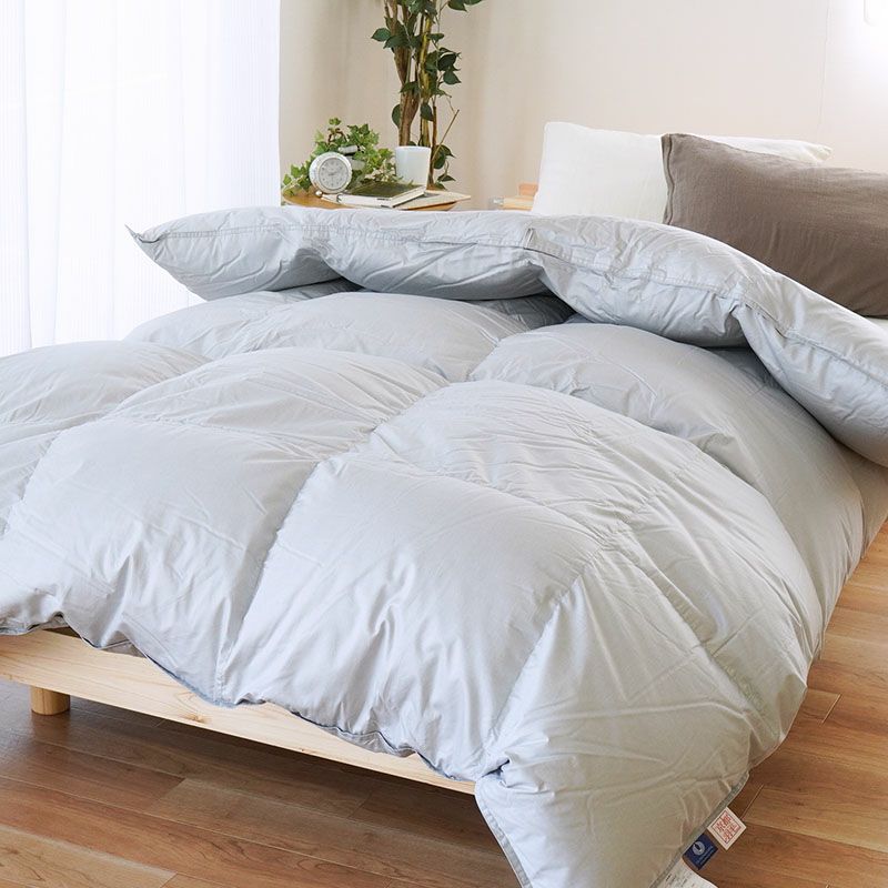 羽毛布団は天然素材の為、無臭ではありません。特に開梱直後や、温度・湿度の関係で臭いが強く感じられる場合もございます。その場合は、羽毛布団に空気を含ませるように数回揺らし、布団内の空気をゆっくり追い出してください。