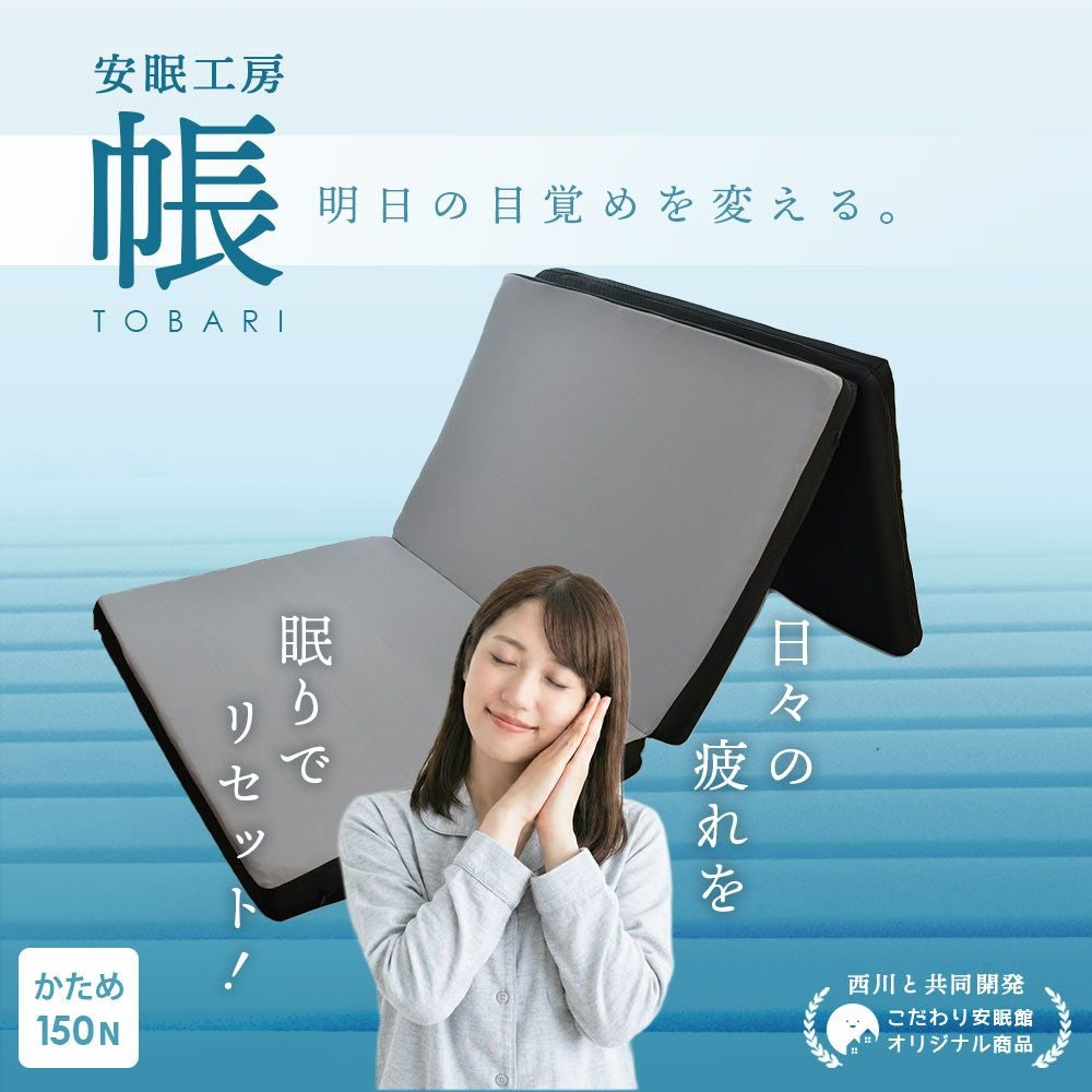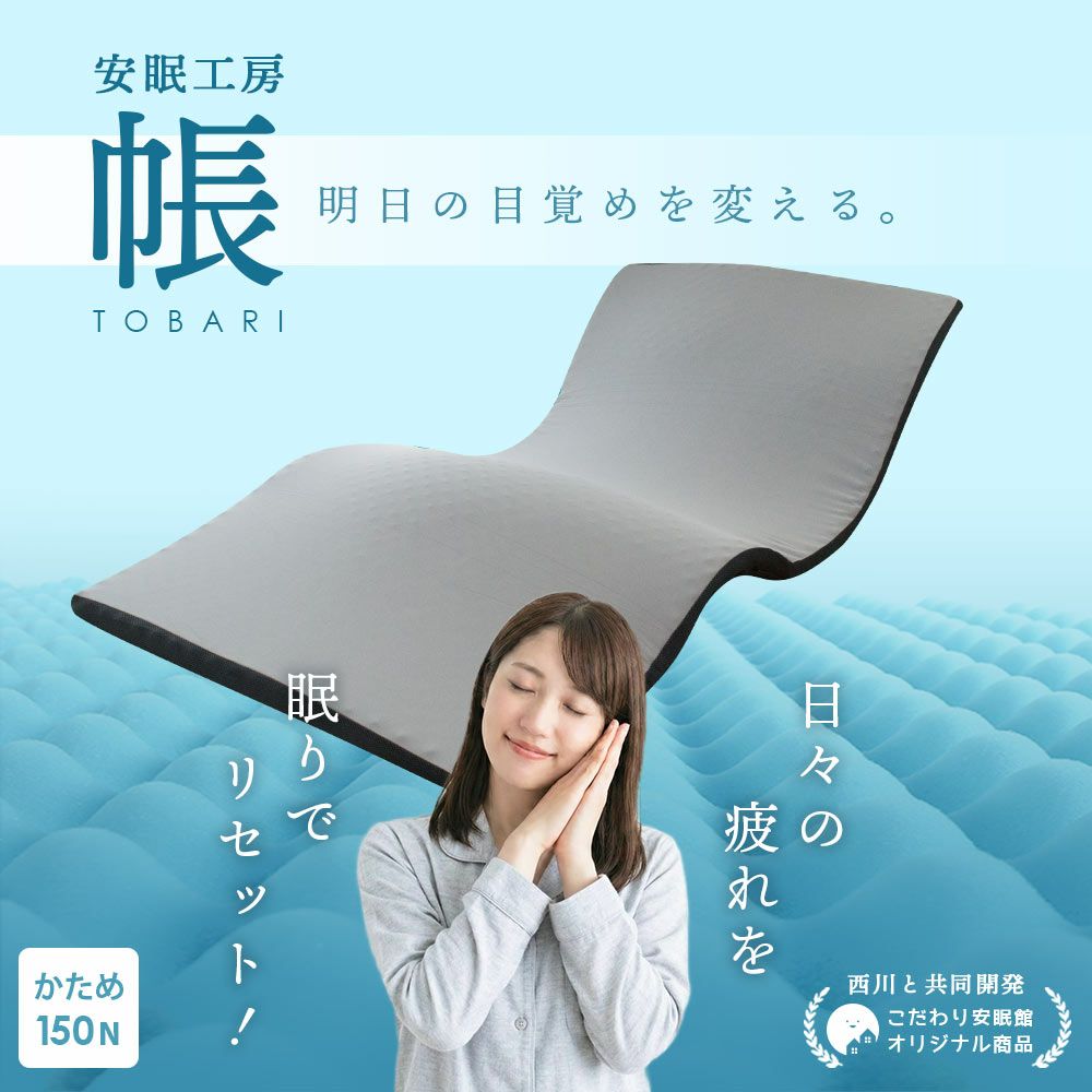 老舗寝具メーカー西川と共同開発した快眠に導く寝具シリーズ、プロファイルマットレス「安眠工房 -帳-」。