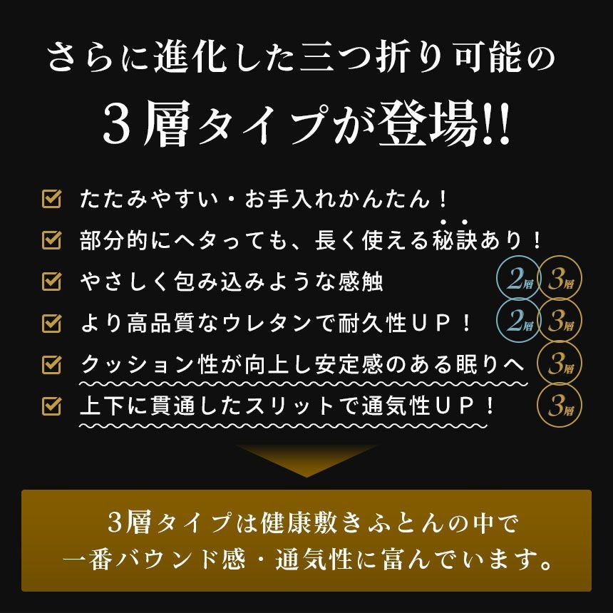 「寝心地を改善したい」「お手入れを簡単にしたい」「凹凸のある敷き布団を試したい」「持ち運べる布団がいい」「家族やゲストに気持ちよく睡眠をとってほしい」…当てはまる方、ぜひ健康敷きふとんをご使用ください。