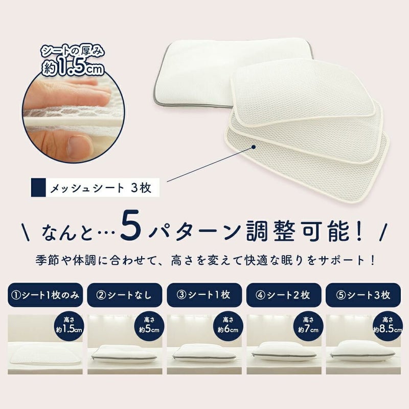 5. 【会員セール価格20%OFF】高さ調整が簡単 エアフィットピロー sleep medical 洗えるメッシュ枕 40×60cm 西川 枕カバー プレゼント