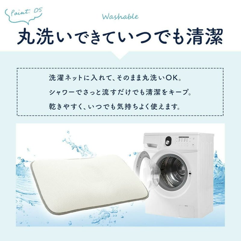 洗濯ネットに入れて、そのまま丸洗いOK。シャワーでさっと流すだけでも清潔をキープ。乾きやすく、いつでも気持ちよく使えます。