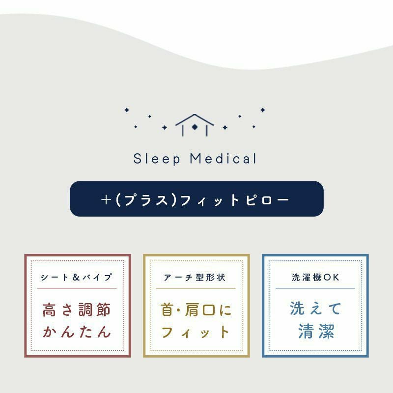 ねごこち本舗のオリジナルブランドSleep Medical(スリープメディカル)は、健康で素敵な毎日を眠りでサポートすることを目指します。オーダーまくらを目指して開発したこの枕は、高さ調整が簡単で首がほっとする安らぎ枕に仕上がりました。肩口にフィットし睡眠中の肩をサポート。肩が凝りやすい、またしっかり寝たのに疲れがとれない方におすすめの枕です。あなたの明日が、元気で、健やかでありますように。