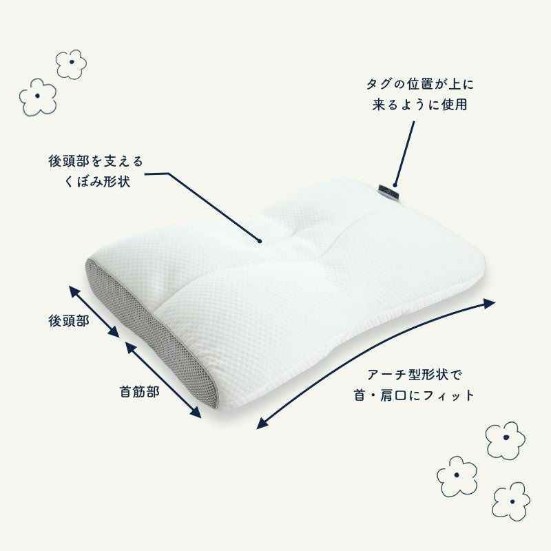 アーチ型形状にすることによって、首や肩口の隙間をなくしフィット感を高めてくれます。後頭部を支えるため中央はくぼみ形状になっています。