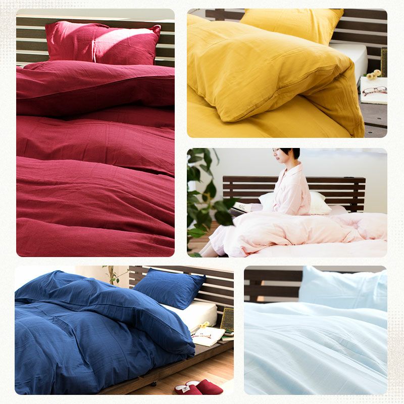 あたたかいお布団とは、身体にしっかりとフィットし、かつ身体に負担を掛けない軽さが重要です。せっかくの軽い羽毛布団でも、重くて固いカバーを掛けてしまうと羽毛が上から押さえつけられて羽毛布団の機能が十分に発揮できません。羽毛布団のキルトにやわらかく寄り添い、ふわりと軽く丈夫なガーゼは、まさに羽毛布団にぴったりのカバーです。
