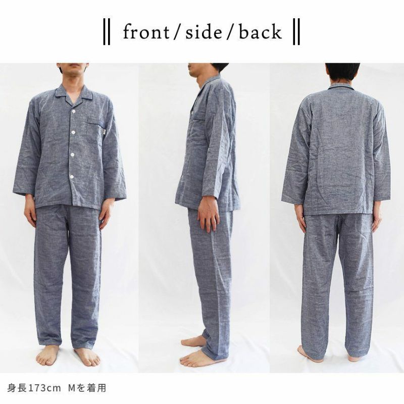 パジャマ,メンズ,wellneru,無撚糸,2重ガーゼ,快眠パジャマ,ガーゼ,紳士,M,L,LL,綿100%,綿,コットン,日本製,春,夏,長袖,長ズボン,通気性,ナイトウェア,ウェルネル,アンツィッシュ,ギフト,父の日,無地,チェック,ネイビー,グレー,ペア,結婚祝い