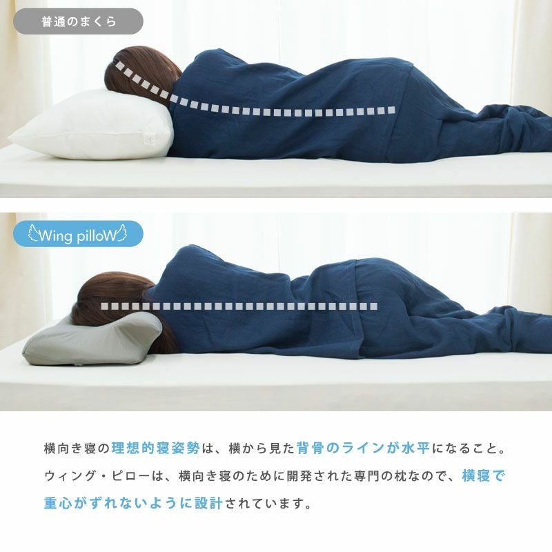 2個セットで2,160円オトクに!「Wing Pillow(ウイング・ピロー)」は特徴的な「立体ウィング形状」により、横向き寝、仰向け寝両方に対応するので、理想の寝姿勢をキープしつつ、自然な寝返りをサポート。ウィングピローはこの独特な形が、横向きで寝たときに頸椎・肩口にぴったりフィットし、頭・首・肩・腕の4点が水平になるよう、バランスよく支えてくれます。