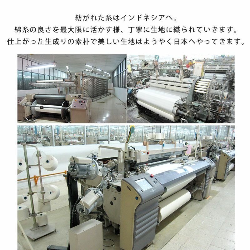 紡がれた糸はインドネシアへ。綿糸の良さを最大限に活かす様、丁寧に生地に織られていきます。仕上がった生成りの素朴で美しい生地はようやく日本へやってきます。