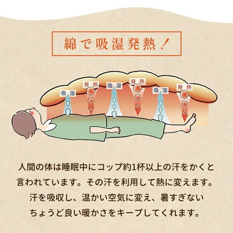 冬でも人は一晩でコップ一杯分の汗をかくと言われています。汗によるムレを軽減することで快適な温かさが持続します。