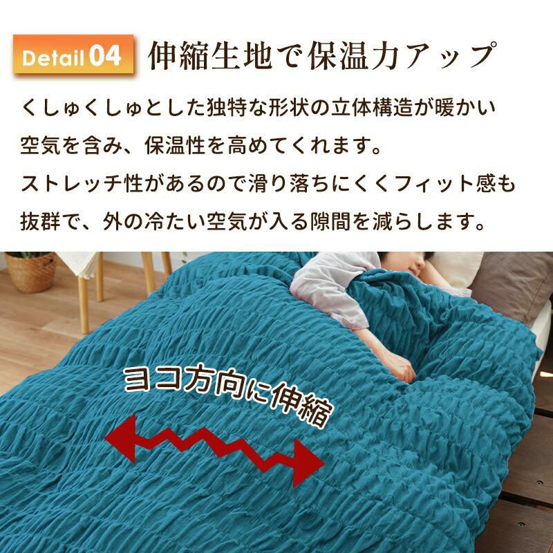 ※この商品は伸縮性がありますので、150×210cmの掛けふとんに適合しています。