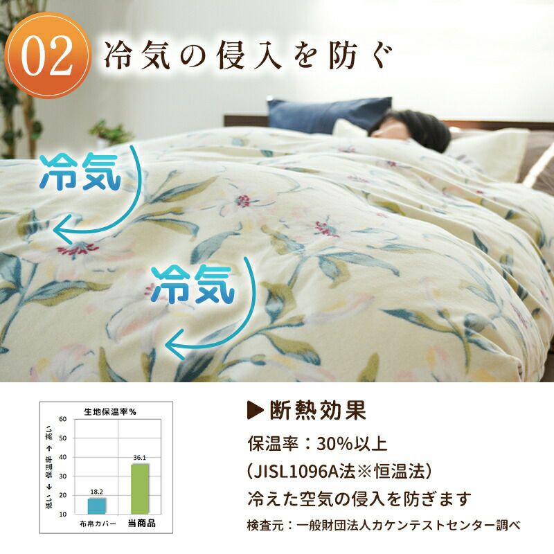 4. 掛けふとんカバー ロマンス小杉 日本製 花柄 あったか シングル 150×210cm