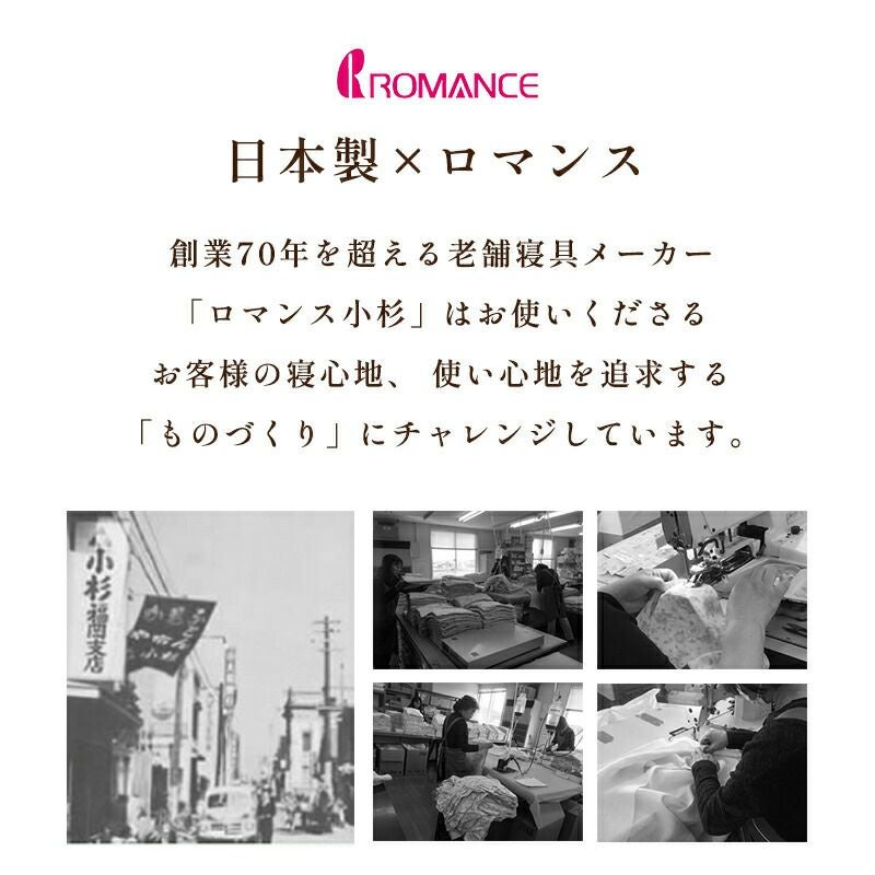 老舗寝具メーカー「ロマンス小杉」で丁寧に造られた商品です。高い技術と品質で、どなたにでも安心してお使いいただける商品に仕上がりました。