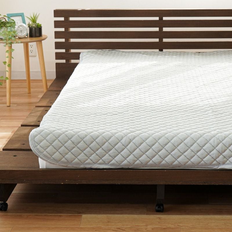 春夏は綿パイルが汗を吸ってサラッと快適。秋冬はヒヤッとしにくく、アクリルやポリエステル毛羽の毛布敷きパッドだと蒸れやすいという時に。季節を通して快適におやすみいただけます。