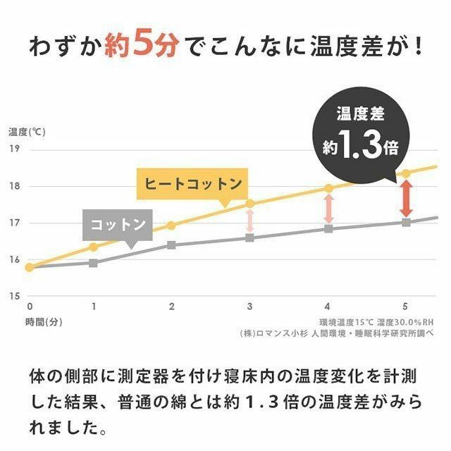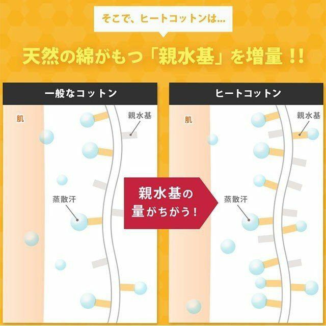 寝汗を熱に変えてくれるヒートコットンが快眠しやすい自然なぬくもりをキープ、さらにお肌にやさしい綿100%なので、不快なムレ感も解消♪