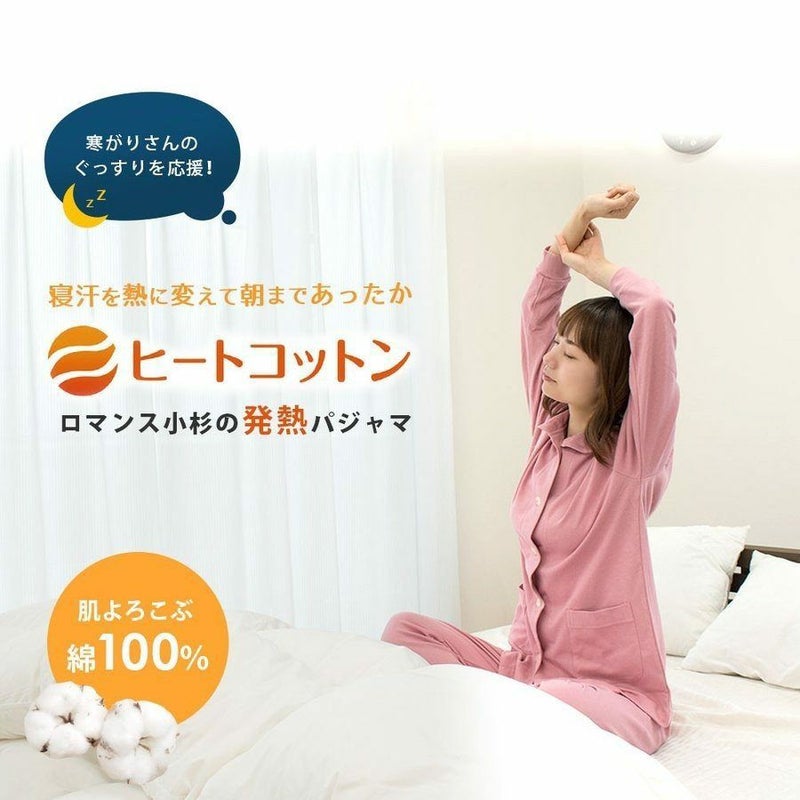 寒がりさんにオススメ♪天然素材の綿100%の吸湿発熱素材「ヒートコットン」を使用!寝具メーカー・ロマンス小杉のあったか国産レディースパジャマ。