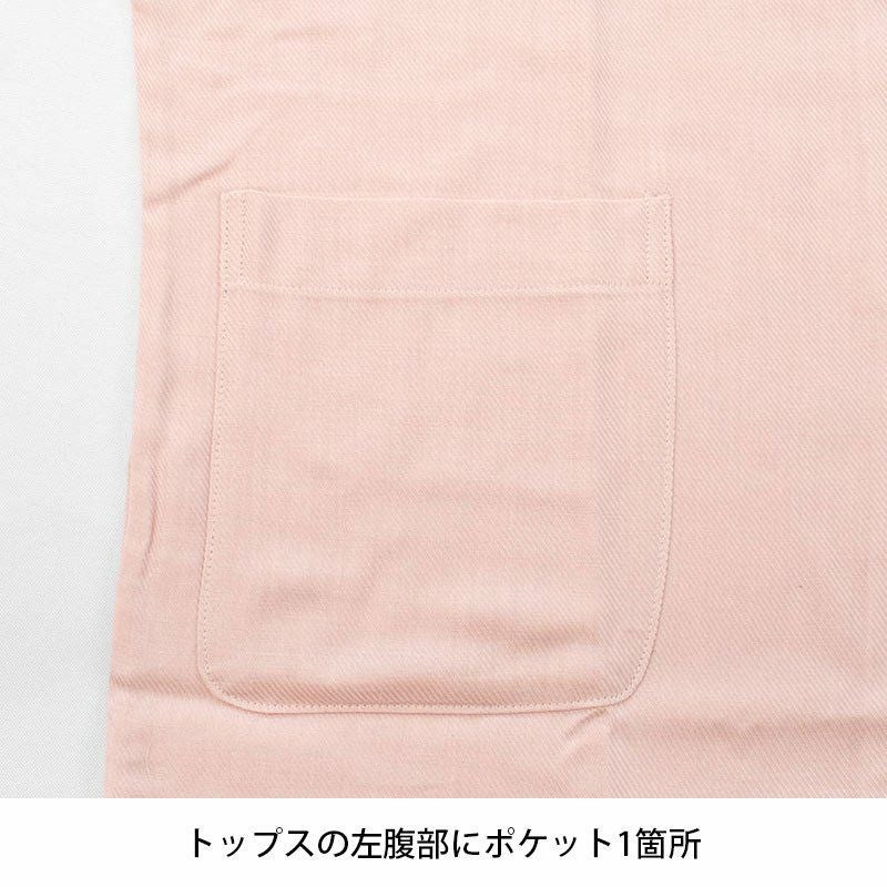 トップス:衿付き、ボタンで全開、左腹部にポケット一つ、ドルマンスリーブ仕立て