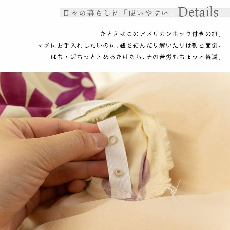 カバー内側には掛布団を固定する紐付き!