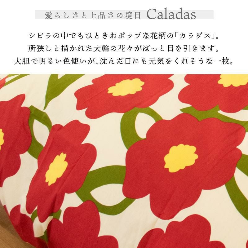 所狭しと描かれた大判の花柄がぱっと目を引く「カラダス」。