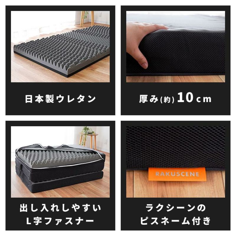 ベッドマットレスの上に重ねて、また、床に直接敷いてお使いいただけます。折りたたみ簡単な三つ折りタイプ。使わないときは立てかけるだけで湿気対策になります。