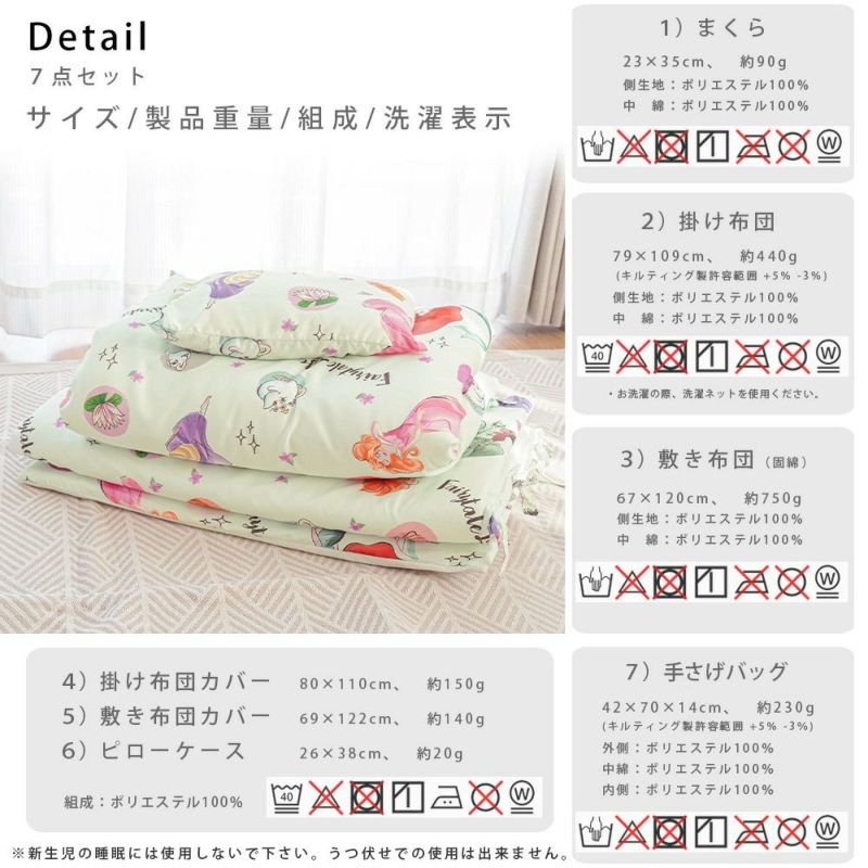 5. ミッキー・プリンセス・カーズ お昼寝布団セット 7点セット バッグ付き