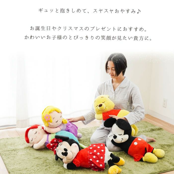 ギュっとだきしめてスヤスヤ。大好きなディズニーのキャラクターと一緒に仲良くおやすみできちゃう枕。誕生日やクリスマスのプレゼントにもおすすめ。