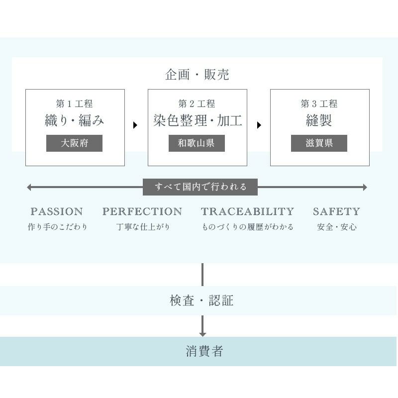 一流寝具メーカー「ロマンス小杉」により、織り・編み、染色整理、縫製などの全工程を国内で行った純正の日本製。