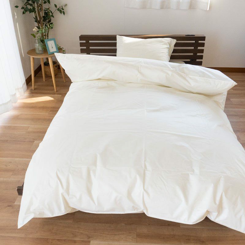 シンプルな無地、少し透け感があるので柄物のお布団に使用されると透ける場合があります。