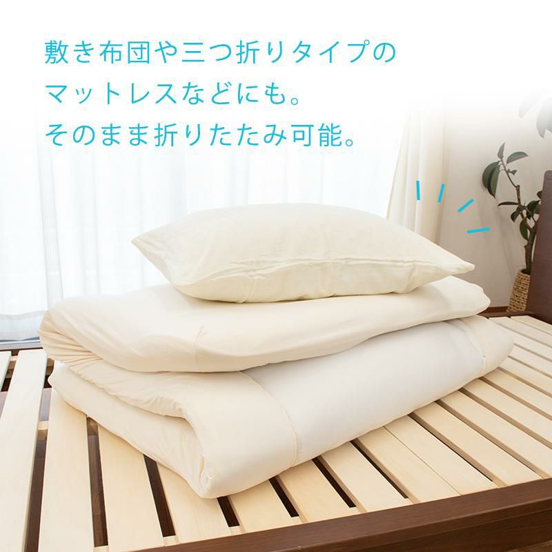 三つ折りマットレスを折りたたんで収納する時に、綿のシーツでは突っ張るため、こちらのシーツを買いました。 伸びるので、折りたたみもラクラク、しわもなく、さらっとしていて気持ちがいいです。 今はこの上に毛布の敷きパッドを掛けていますが、夏ならこれだけが良いかも。 洗い替え分の購入を検討します。